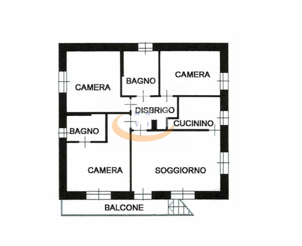 On the first floor four-room apartment (entrance, living room/kitchen, 2 bathrooms with windows, 3 bedrooms and balcony)