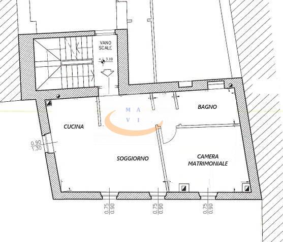 The apartment comprises: entrance hall, living room/kitchen, hallway, bathroom, double bedroom.