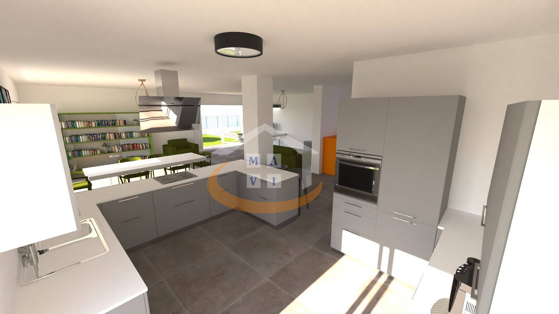- Piano seminterrato: ampio locale multiuso con portone sezionale automatizzato, capace di ospitare fino a 4 auto; locale lavanderia, bagno di servizio, locale tecnico, cantina e accogliente taverna areata.