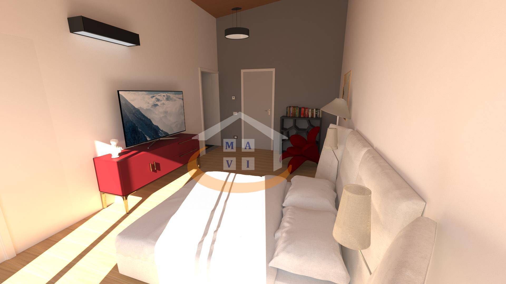 - Primo piano: due camere da letto con bagno finestrato, una camera matrimoniale con bagno privato e cabina armadio; ulteriore locale adibito a studio, facilmente trasformabile in quarta camera da letto.