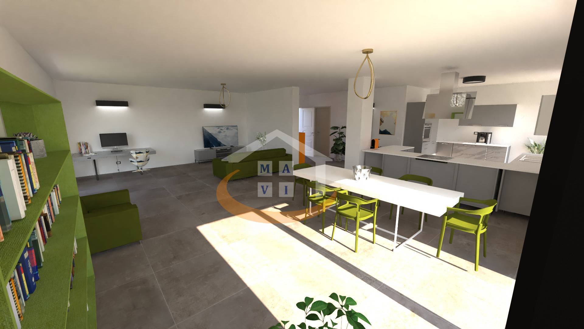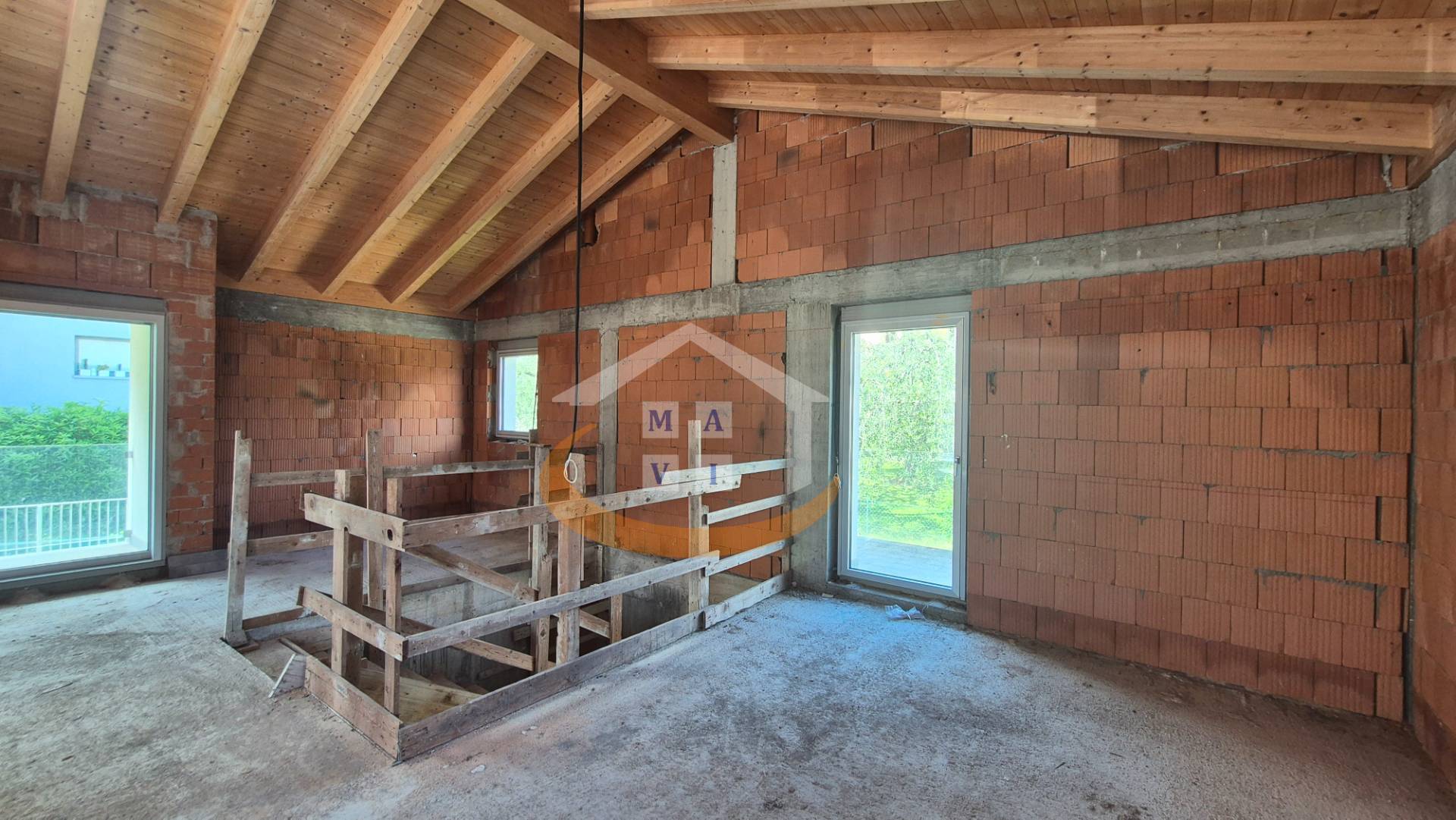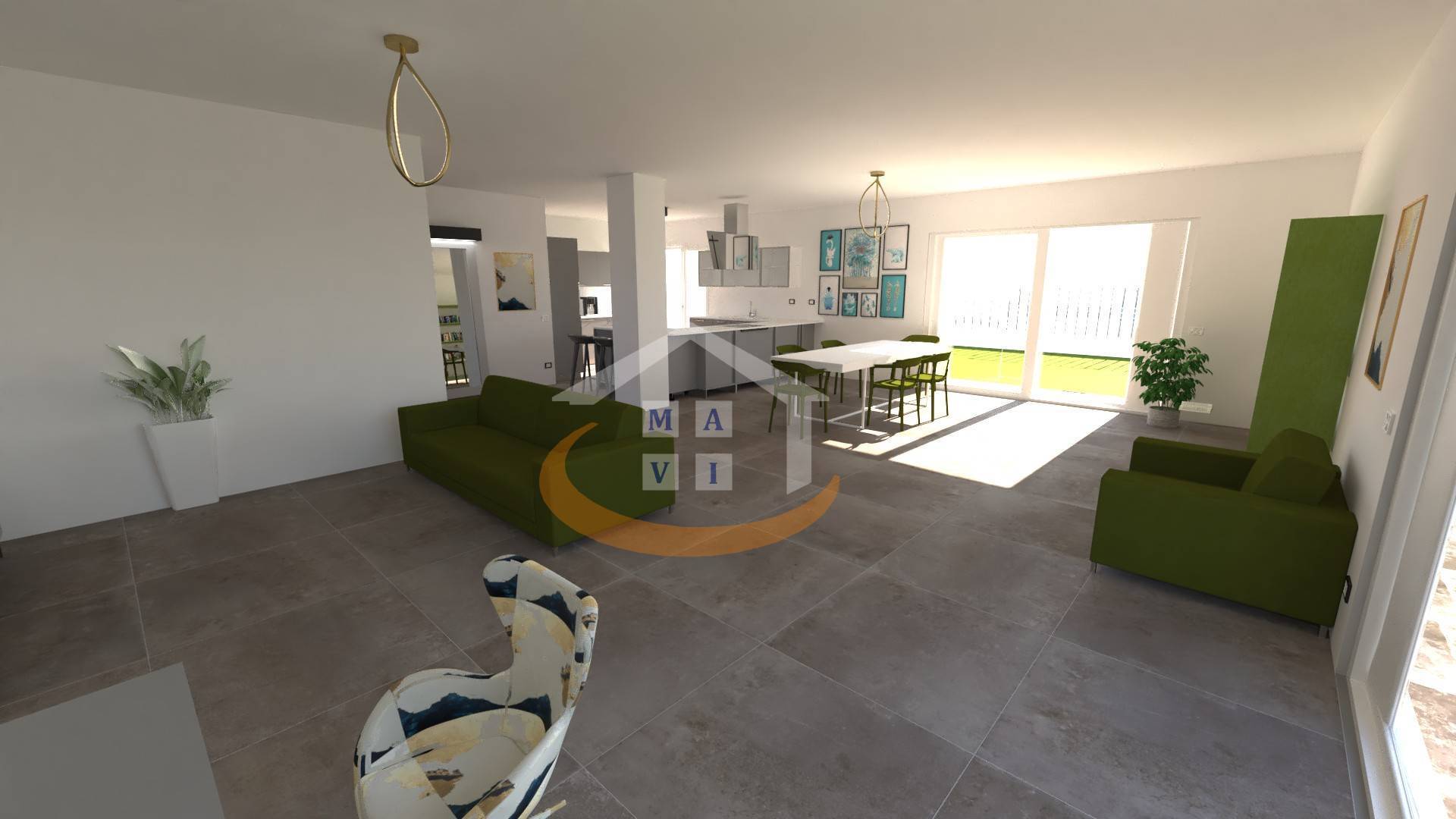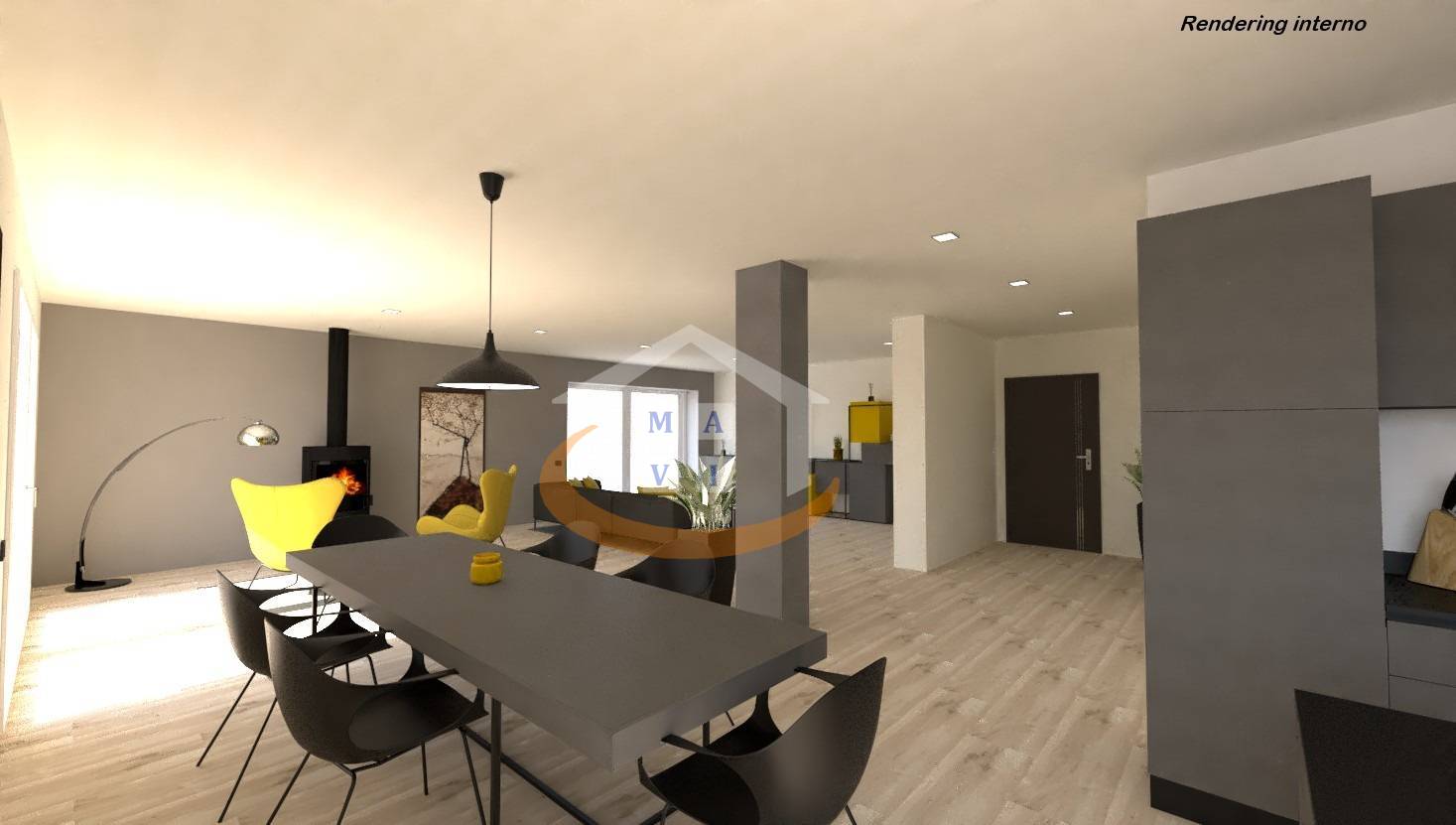 - Piano terra: luminoso soggiorno di circa 50 mq, ampia cucina, bagno finestrato e giardino privato.