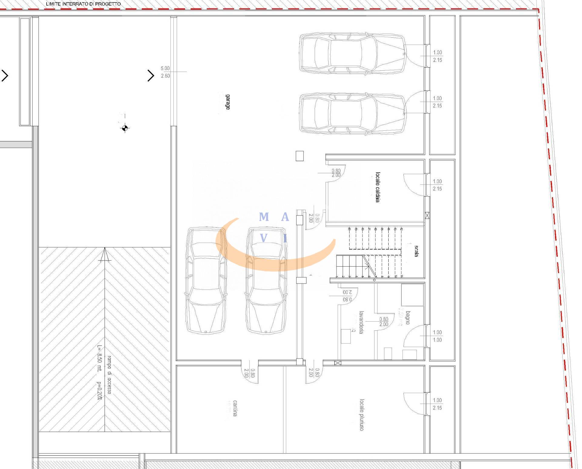 - Piano seminterrato: ampio locale multiuso con portone sezionale automatizzato, capace di ospitare fino a 4 auto; locale lavanderia, bagno di servizio, locale tecnico, cantina e accogliente taverna areata.