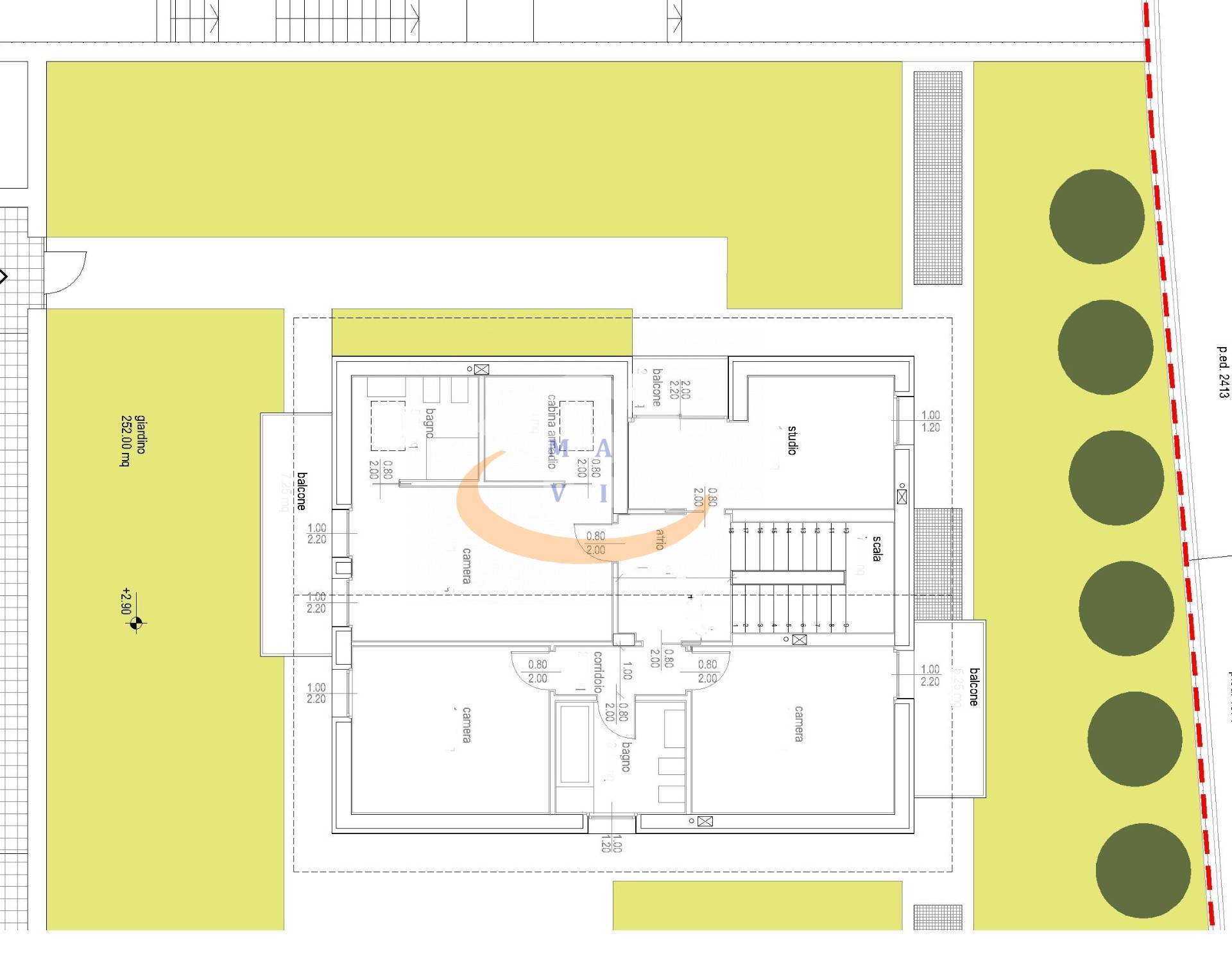 - Primo piano: due camere da letto con bagno finestrato, una camera matrimoniale con bagno privato e cabina armadio; ulteriore locale adibito a studio, facilmente trasformabile in quarta camera da letto.