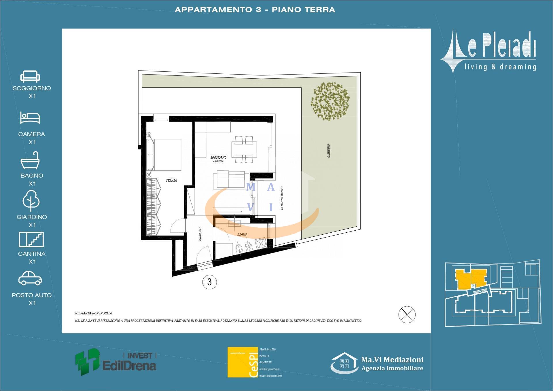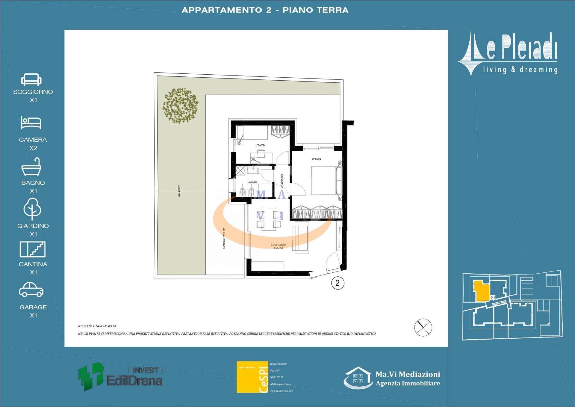 Ogni appartamento è stato progettato per offrire un connubio perfetto tra estetica e funzionalità. Si va dalle soluzioni con giardino, ideali per chi desidera vivere a contatto con il verde, fino ai prestigiosi attici al secondo piano, dotati di ampie terrazze solarium, perfette per godersi il panorama in totale riservatezza. A piano interrato posti auto/Garage e cantine.