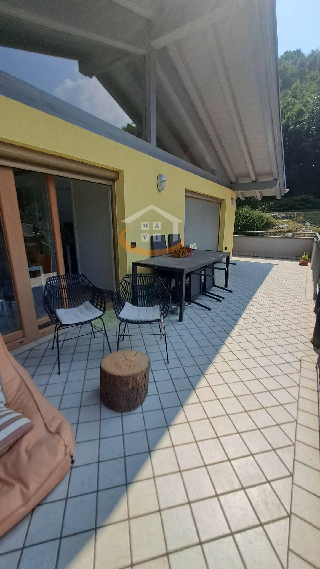 Ampio terrazzo esposto a sud con splendida vista lago, perfetto per il relax all’aperto. La proprietà è completata da un giardino con area relax e gazebo panoramico, oltre a una porzione di bosco che valorizza ulteriormente l’immobile.