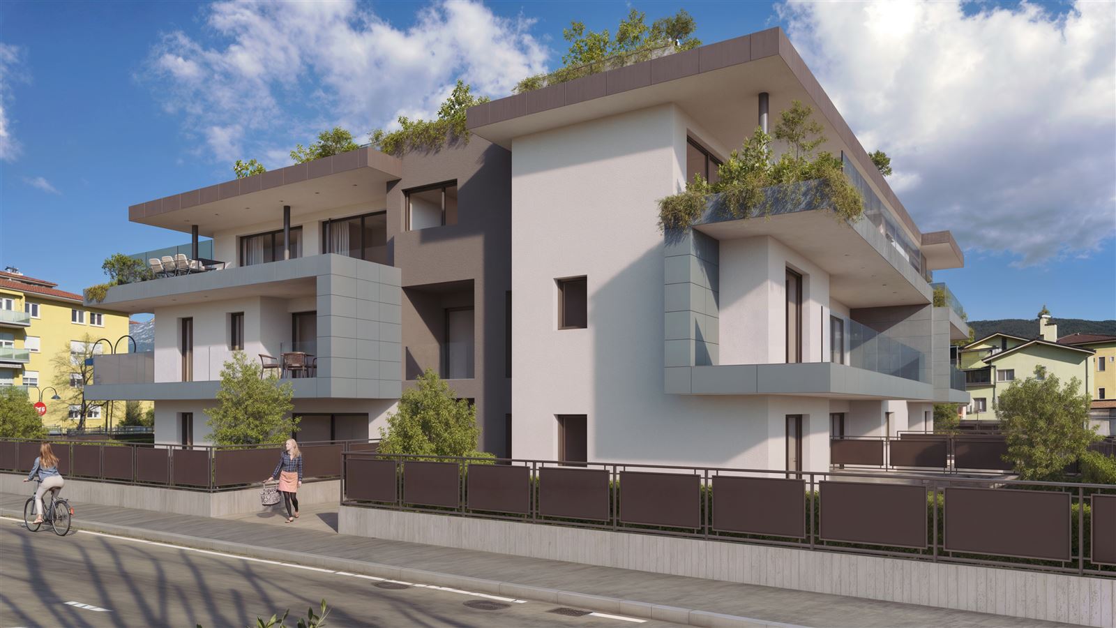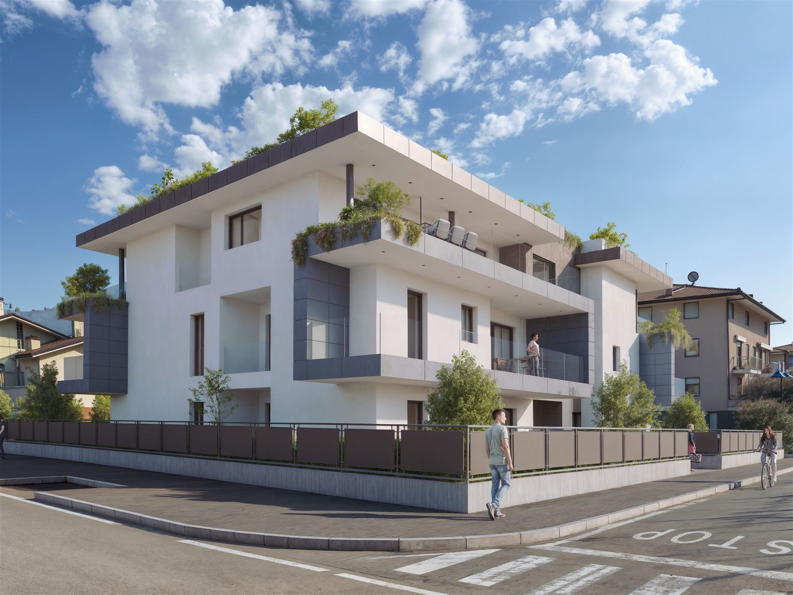 Ogni appartamento è stato progettato per offrire un connubio perfetto tra estetica e funzionalità. Si va dalle soluzioni con giardino, ideali per chi desidera vivere a contatto con il verde, fino ai prestigiosi attici al secondo piano, dotati di ampie terrazze solarium, perfette per godersi il panorama in totale riservatezza. A piano interrato posti auto/Garage e cantine.